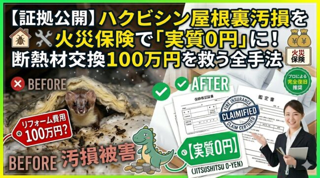 【証拠公開】イタチ駆除と断熱材交換を火災保険で「実質0円」にする全手法|2026年最新の汚損認定事例