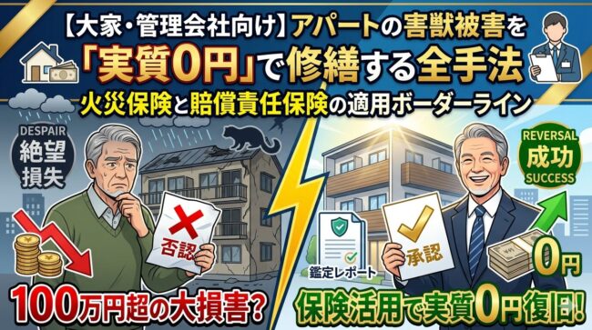 【大家・管理会社向け】アパートの害獣被害を「実質0円」で修繕する全手法|火災保険と賠償責任保険の適用ボーダーライン