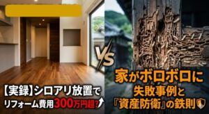 そもそも、放置するとどれくらい恐ろしいことになるのか?300万円の修繕費がかかったリアルな失敗事例はこちらの記事で詳しく解説しています。