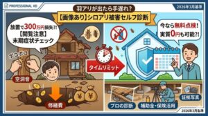住宅ローンが残っている状態で、家としての機能を失い、売却しようにも「シロアリ被害物件」として二束三文の査定しかつかない――。そんな300万円以上の損失を回避できるタイムリミットは、まさに「今」この瞬間かもしれません。