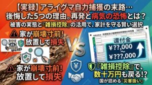 また、確定申告で駆除費用が戻ってくる『雑損控除』についても知っておかないと損をします。具体的な申請手順はこちらの記事で詳しく解説しています。