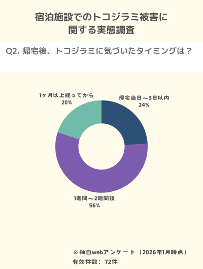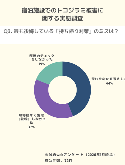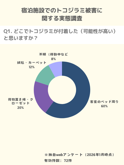当メディアでは、2026年1月、実際に宿泊施設でトコジラミ被害に遭った72名を対象に独自アンケートを実施しました。
